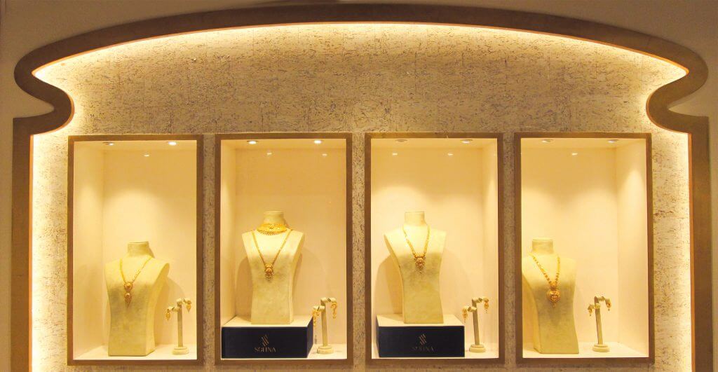 Sohna one would find jewelleries starting from Rs. 5000 onwards and variety of gold jewelleries such as antique gold, yellow polish rose gold and work of stone and enamel. Irrespective of age, Sohna houses jewelleries for every woman. Each piece of jewellery is exclusively crafted. The special line of jewellery collection called Buddha collection and Shiva Collection is the lime light. Some of them are hand painted and done with classis designs specific to figures.sohna1Sohna: Its classic interior: