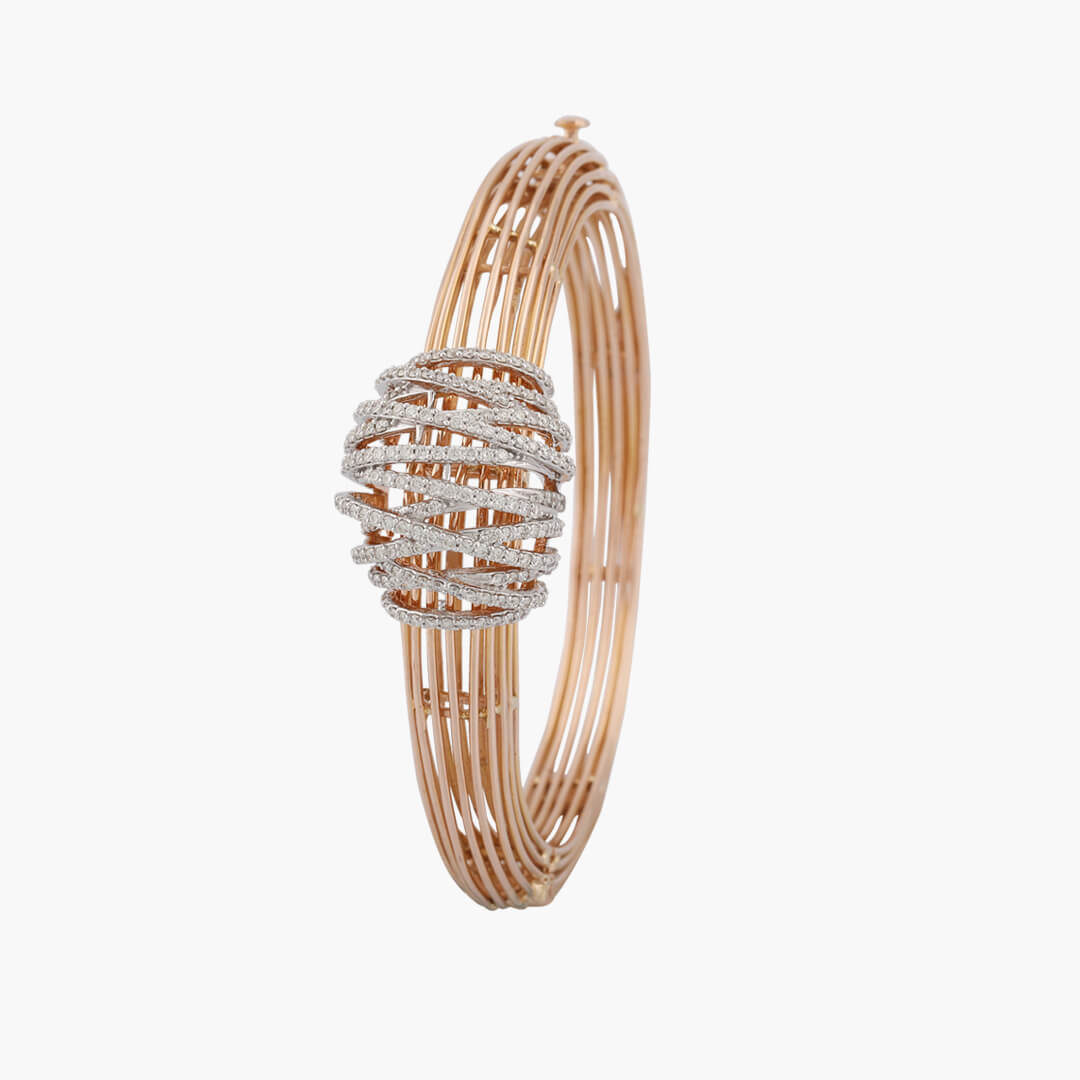 The diamond bracelet is crafted to radiate grace and elegance. The wired design will enhance your beauty at every ocassion.