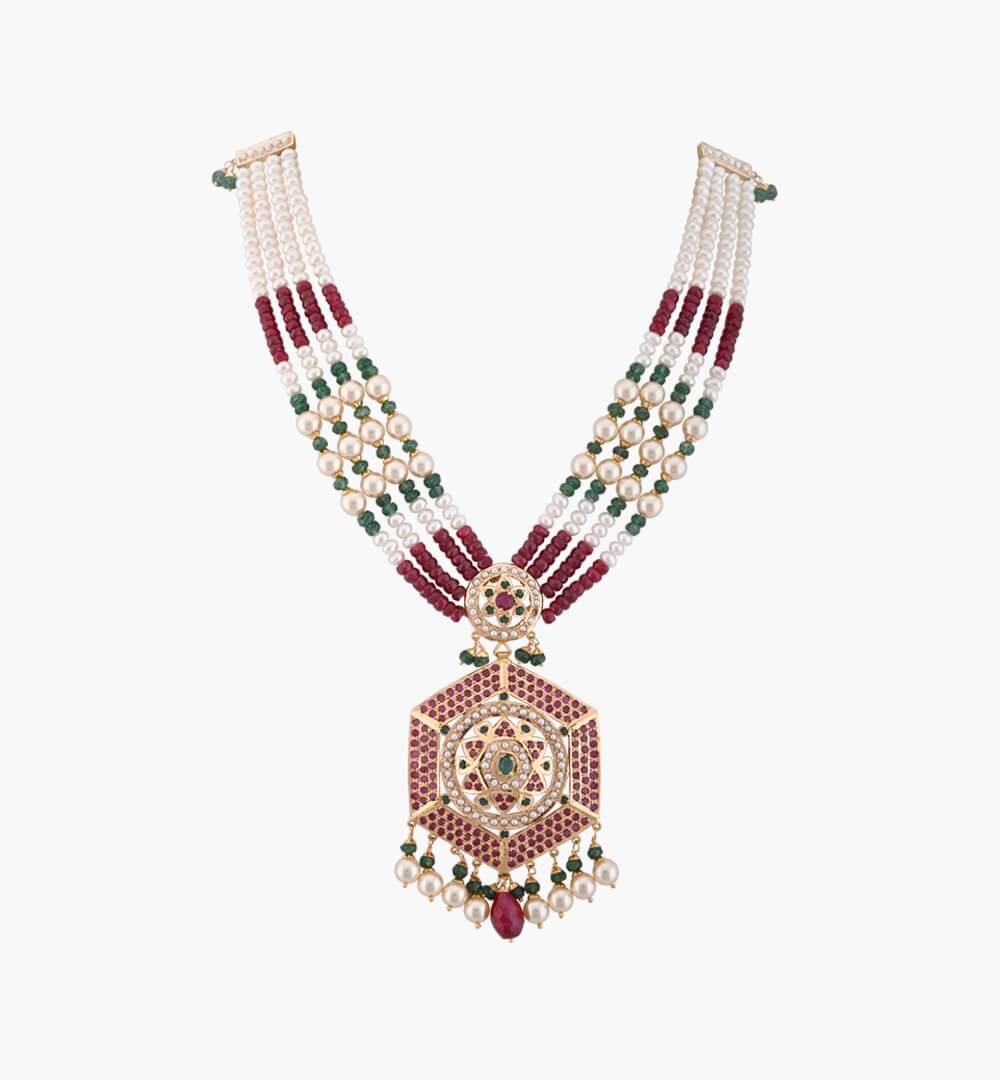 Dhak, Lion, Chandmala, Trident, Lotus & the Visage of MaaDurga – the harbingers of the Devi’s purest energy is depicted in the necklace as source of . The creation pays homage to the ‘Shakti’ or the divine fearless power of the feminine.