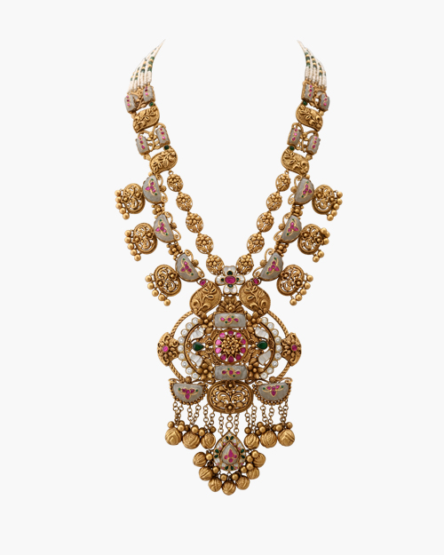 Dhak, Lion, Chandmala, Trident, Lotus & the Visage of MaaDurga – the harbingers of the Devi’s purest energy is depicted in the necklace as source of . The creation pays homage to the ‘Shakti’ or the divine fearless power of the feminine.